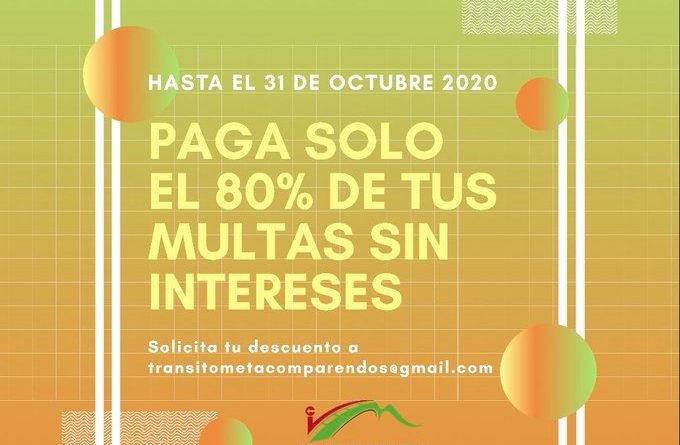 Recuerde que se le descontarán los intereses y solo paga el 80% del valor de la multa. Póngase al día y aproveche este gran descuento.
