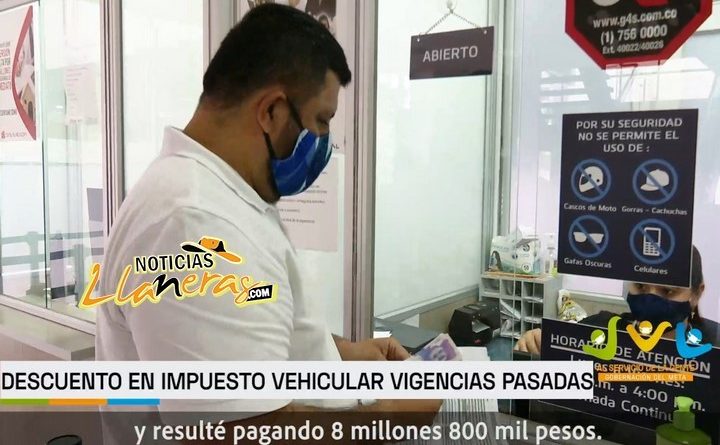 La deuda de Guillermo Gómez, ya ascendía a los $31’000.000, pero al acogerse al beneficio histórico del impuesto vehicular solo pagó $8’800.000. Guillermo manifiesta que «sirve pagar, sirve acercarse a realizar las cancelaciones e invita a los contribuyentes del departamento a que se acerquen a la Gobernación del Meta a pagar el impuesto que se encuentra con muy buenos descuentos.