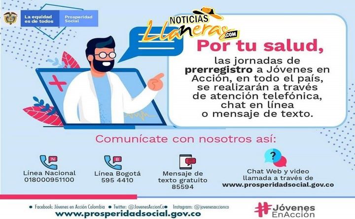 Para realizar la preinscripción pueden comunicarse a la línea gratuita nacional 018000951100, enviar un mensaje gratuito al 85594 o realizarlo a través de la página web www.prosperidadsocial.gov.co.