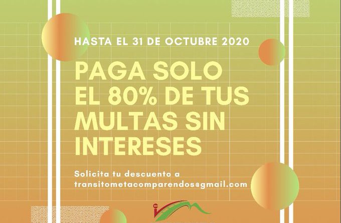 Recuerde que se le descontarán los intereses y solo paga el 80% del valor de la multa. Póngase al día y aproveche este gran descuento.