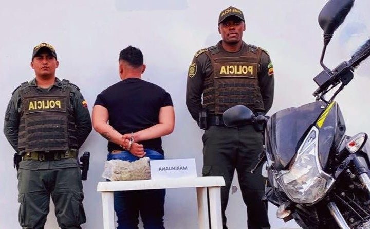 La Policía Nacional junto con el Ejército, durante las últimas horas capturó a un hombre de 23 años de edad, quien se desplazaba como conductor de una motocicleta y portaba en su poder 460 gramos de marihuana tipo creepy, sustancia avaluada en 400 mil pesos.