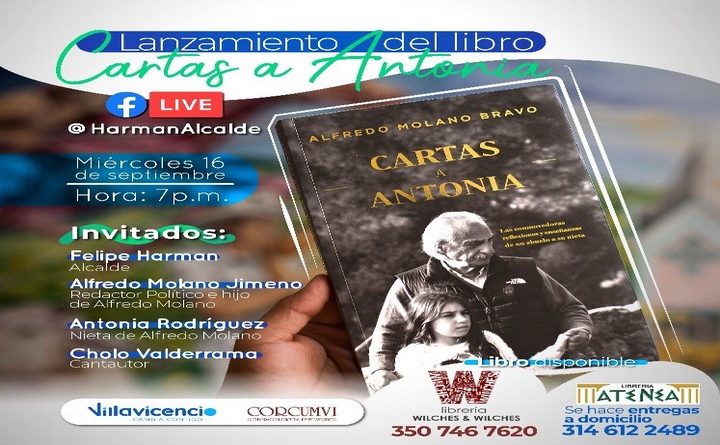 A través de un evento virtual programado para el 16 de septiembre, la Corporación Cultural Municipal de Villavicencio (Corcumvi) y la Alcaldía Municipal realizarán el lanzamiento del libro “Cartas a Antonia” del escritor y periodista, Alfredo Molano Bravo.