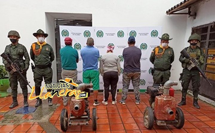 La Policía Metropolitana de Villavicencio efectuaron la captura en flagrancia de tres hombres de 24, 41 y 60 años de edad, así como de una mujer de 32 años de edad, en la vereda El Centro de Acacías – Meta, quienes fueron sorprendidos por las autoridades ambientales realizando una construcción en una zona protegida.