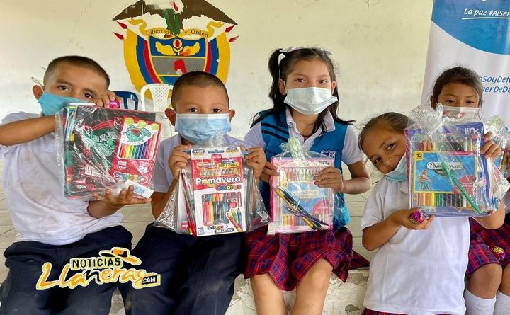 Mientras tanto, a través de la campaña «Dona Artículos para la Paz», algunos I.E. serán donados del 2022 al 2023 se entregó 3,000 kits escolares a estudiantes de primaria y secundaria, En las zonas rurales de Puerto Lleras, Uribe, Lejanías, Puerto Gaitán, Vista Hermosa, Puerto Concordia, Mesetas y Puerto López, con la estrategia apunta a prevenir el reclutamiento y uso de niños y niñas en guerras comunales a través de alertas tempranas.