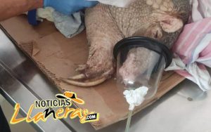 Al armadillo gigante le administraron suero antiveneno multiuso y lo trasladaron al Centro de Atención y Evaluación (CAV) del Bioparque Los Ocarros, porque había sido mordido y en la cual estaba sangrando.