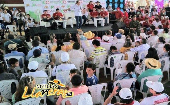 Tras visitar el proyecto de electrificación rural en la vereda Peñas Blancas, de San Juan de Arama, la gobernadora Marcela Amaya, en compañía del alcalde (e), Jorge Ovidio Cruz, instalaron la versión número veinte del encuentro comunitario Gobernación sobre Ruedas, en el polideportivo de la localidad.