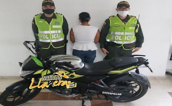 La Policía recuperó una motocicleta Pulsar NS de placa DYQ 67F y logró la captura de una mujer de 35 años de edad por el delito de receptación en el barrio Brisas del Guatiquía.