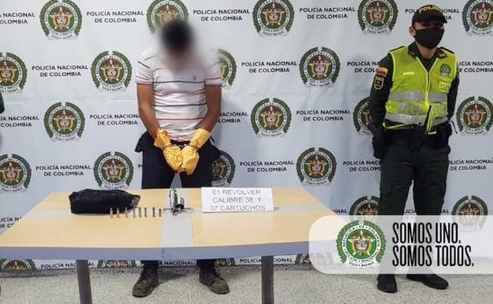 Como resultado del operativo policial, patrullas del cuadrante lograron la captura de un sujeto de 23 años de edad, a quien se le halló en su poder un arma de fuego tipo revolver, marca Smith & Wesson, calibre 38 milímetros y ocho cartuchos para la misma, sin permiso para porte o tenencia, la cual se encuentra avaluada en $ 4.500.000.