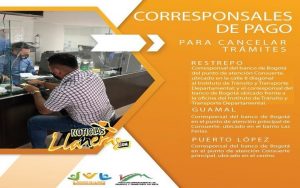 Puedes realizar el pago de los diferentes trámites gestionados en el Instituto Departamental de Tránsito y Transporte del Meta, a través de corresponsales del banco de Bogotá en los siguientes puntos: