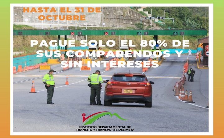 Si tiene multas de tránsito pendientes por pagar, podrá acogerse al beneficio de descuento y cancelar únicamente el 80% del valor del comparendo y sin intereses.