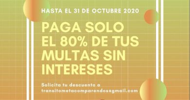Recuerde que se le descontarán los intereses y solo paga el 80% del valor de la multa. Póngase al día y aproveche este gran descuento.
