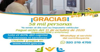 De esta forma la ciudadanía está aportando a la reactivación económica del departamento del Meta, ya que estos dineros son invertidos en proyectos que impactan en beneficio de los metenses; por eso, se debe tener una cultura de pago, recuerde que esto permitirá que la Gobernación del Meta financie iniciativas propuestas en su plan de desarrollo.