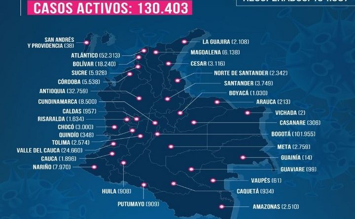 Hoy 225 fallecidos por covid-19 en Colombia y 134.498 casos activos