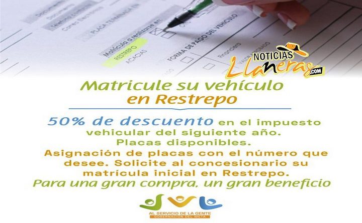 La Gobernación del Meta invita a la ciudadanía en general a matricular su vehículo en el departamento, ya que así pueden acceder a un beneficio único, como lo es el 50% de descuento en el impuesto vehicular del siguiente año.