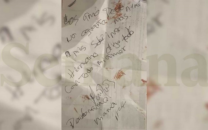Los investigadores recalcaron que el documento fue encontrado al lado derecho de la cama donde estaban ubicados ambos cuerpos, los cuales tenían varias heridas producidas con un arma blanca.