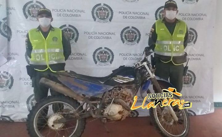 En perímetro del sector El Trampero, vereda El Carmen del municipio de San Carlos de Guaroa, la Policía halló abandonada una motocicleta marca Yamaha, color azul, modelo 2019.