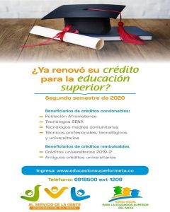 Mayor información al Pbx: 8 6818500 ext. 1204 – 1206, [email protected], www.meta.gov.co y www.educacionsuperior.co.